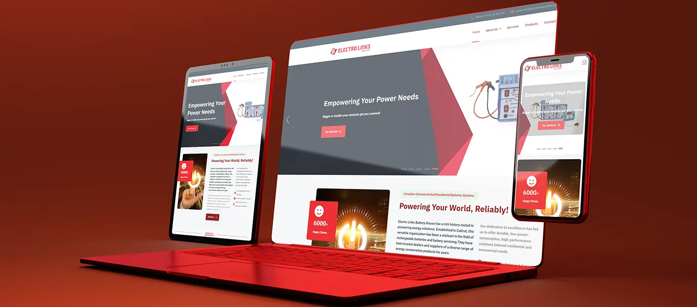 Electro Links Battery House is a company that was founded in Calicut, and they had come to us to cement their online presence by developing a website and updating their logos. They had a history of reputation in rechargeable batteries, battery servicing, and energy conservation products; therefore, they required an up-to-date platform that would reflect their experience and reliability. We have created them a professional website and have updated their logo so that it can match their legacy but still have a modern identity that will make their brand more recognizable, credible, and appealing to customers.